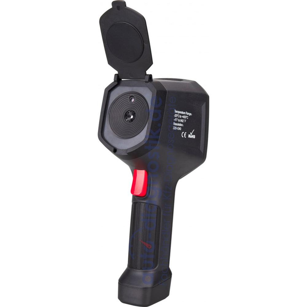 The Autel MaxiIRT IR100 is an advanced thermal imaging camera specifically designed for precise temperature measurements and diagnostics. It provides non-contact temperature measurements in a wide range from -20 °C to 450 °C and visualizes heat changes, losses and accumulations in real time. With its high image resolution and innovative dual-camera overlay function, the Autel MaxiIRT IR100 is an indispensable tool for professional diagnostics and maintenance in the automotive and machinery industries.